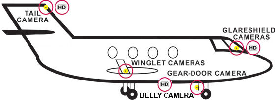 cameras recessed into the cockpit glare shield that provide passengers